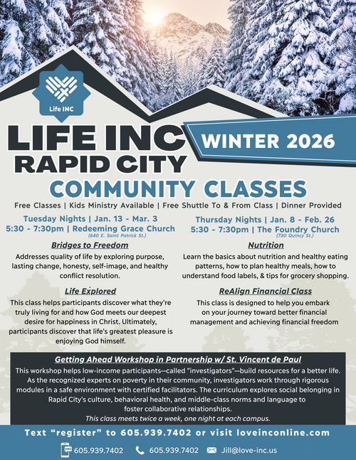 Use the links below to sign up to take a Life INC class. See the flyer below for class options.